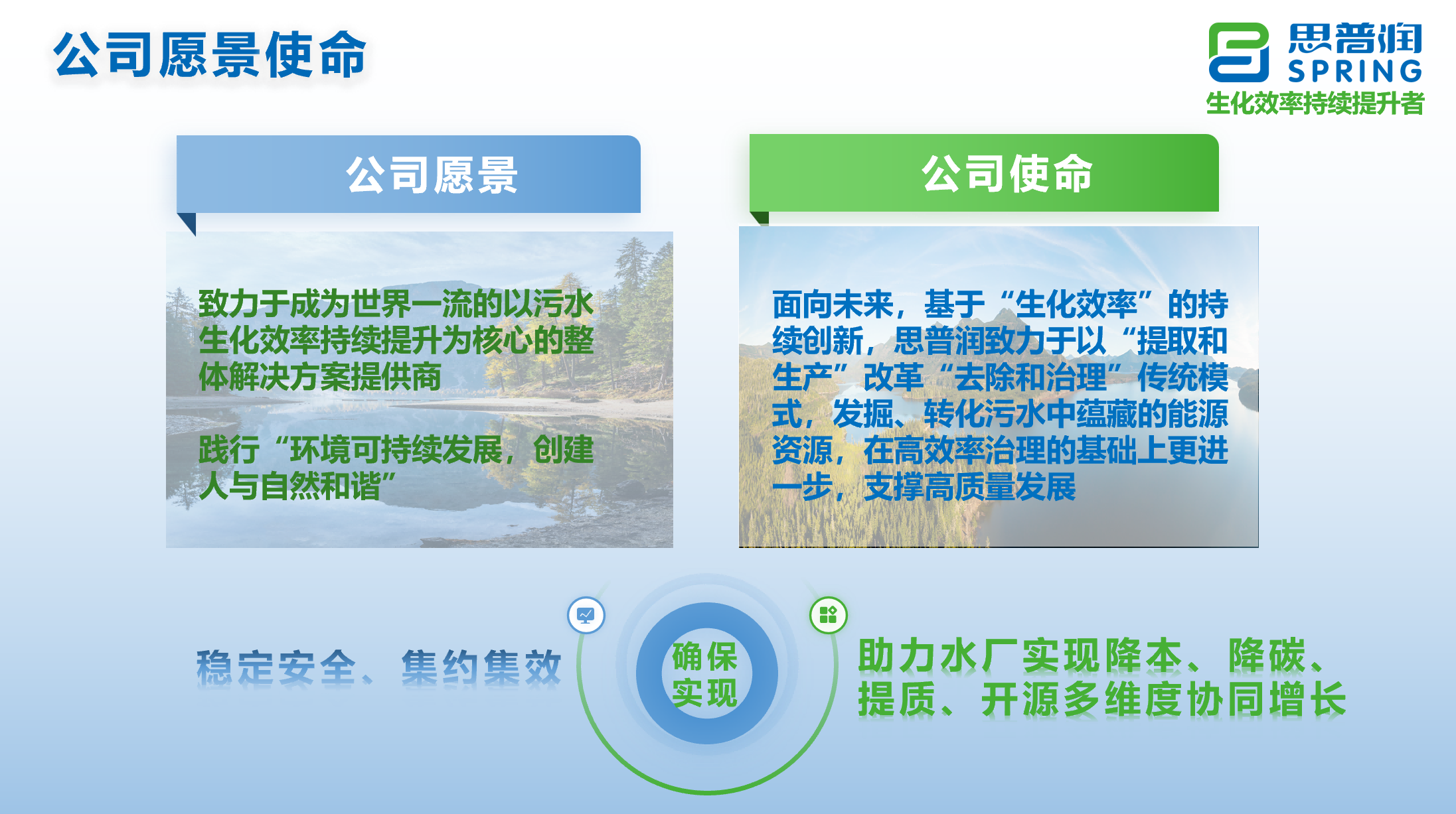 踐行“環(huán)境可持續(xù)發(fā)展,創(chuàng)建人與自然和諧”的使命和愿景,思普潤將持續(xù)服務(wù)改善中國污水廠太粗放、太低效、高能耗、假達(dá)標(biāo)、難穩(wěn)定的運(yùn)營困境,推動產(chǎn)業(yè)加速向“穩(wěn)定安全、集約集效”進(jìn)階。面向未來,基于“生化效率”的持續(xù)創(chuàng)新,思普潤致力于以“提取和生產(chǎn)”改革“去除和治理”傳統(tǒng)模式,發(fā)掘、轉(zhuǎn)化污水中蘊(yùn)藏的能源資源,在高效率治理的基礎(chǔ)上更進(jìn)一步,支撐高質(zhì)量發(fā)展,助力污水廠實現(xiàn)降本、降碳、提質(zhì)、開源多維度的協(xié)同增長。