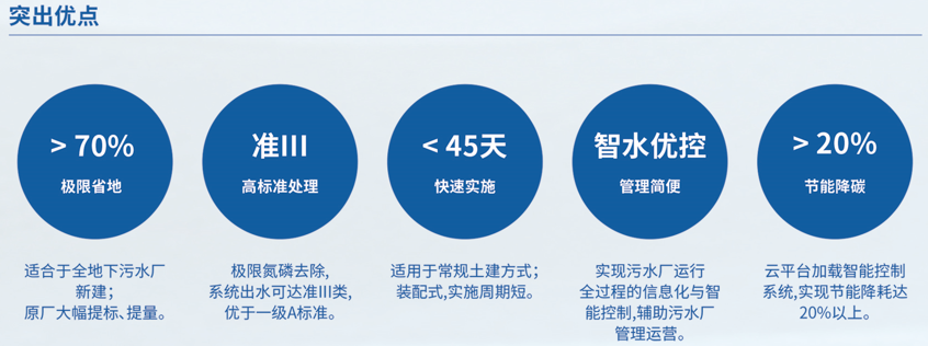 集約節(jié)約:工藝流程集約,無需二沉池,占地節(jié)約,比AAO+深度處理、MBR工藝更省地,最高可以節(jié)省70%的占地面積,采用全地上建設(shè),萬噸水占地面積約為2800~3500m2,全地下建設(shè),萬噸水占地面積約為2000~2500m2。