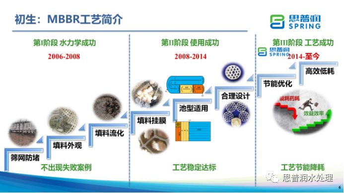 思普潤用了2年時(shí)間,解決了MBBR水力學(xué)難題,破解了工程中的篩網(wǎng)堵塞、填料選型、填料流化問題;緊接著,思普潤用了6年時(shí)間,通過對各種水質(zhì)、工藝、具體情形的摸索,逐步建立起一套完整的MBBR技術(shù)體系;自2014年至今,思普潤已開始研究MBBR的節(jié)能降耗,低碳運(yùn)行,始終保持對MBBR工程和研究的熱情。