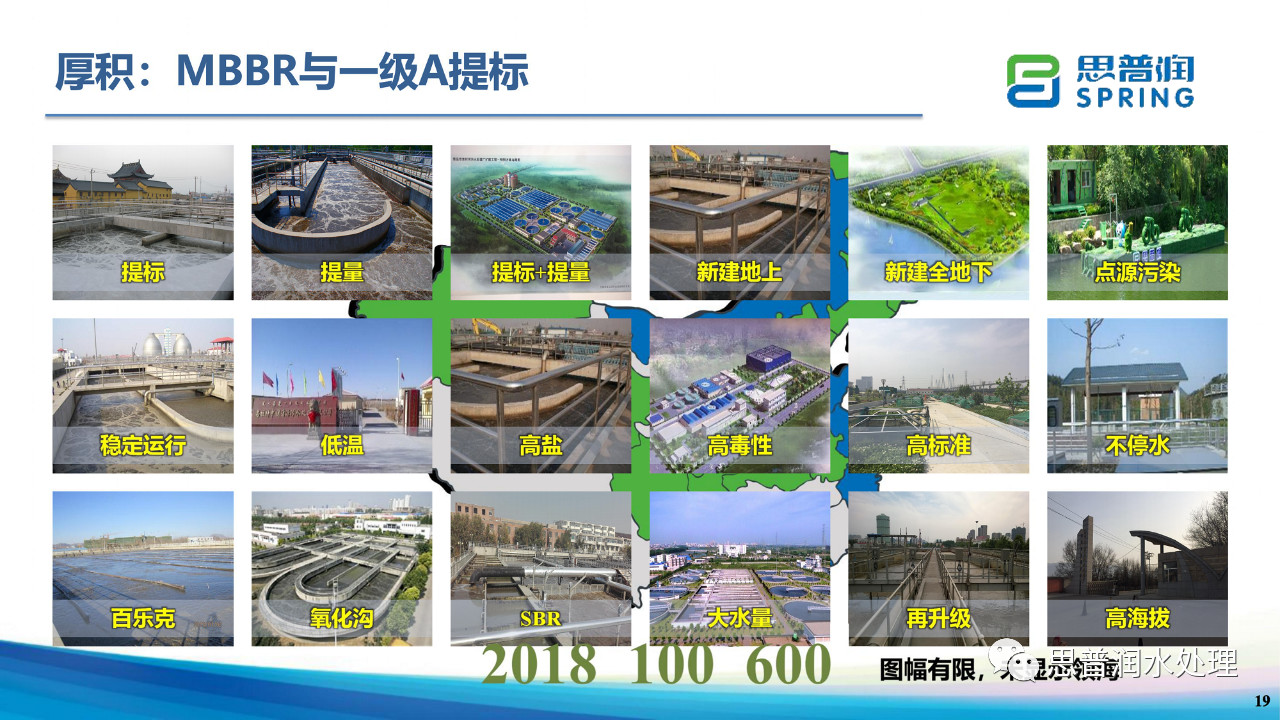 目前思普潤的MBBR工藝業(yè)績涵蓋了市政污水和工業(yè)廢水;地上和地下污水廠;低溫、高鹽、高毒性等各類水質(zhì);以及各種不同類型的工藝形式如AAO、SBR、MSBR、氧化溝等。施工方式也已經(jīng)有不停水施工的成功案例。