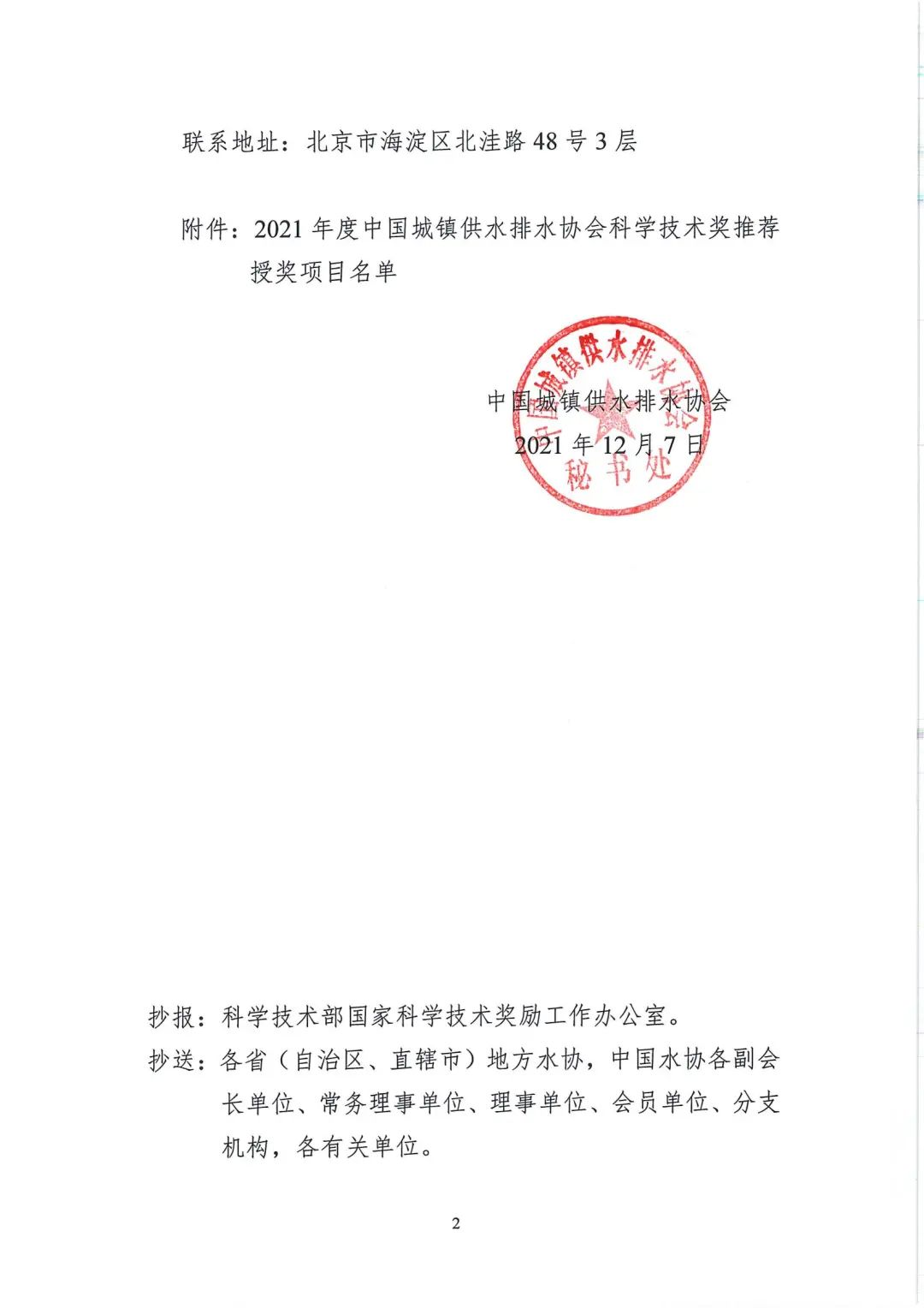 中國水協(xié)科學(xué)技術(shù)獎作為城鎮(zhèn)供水排水行業(yè)極具權(quán)威的獎項,旨在推動城鎮(zhèn)供水排水行業(yè)科技創(chuàng)新與技術(shù)進步,加速科技成果轉(zhuǎn)化,激勵在城鎮(zhèn)供水排水行業(yè)科技進步中做出突出貢獻的單位和個人,調(diào)動科技工作者的積極性和創(chuàng)造性。