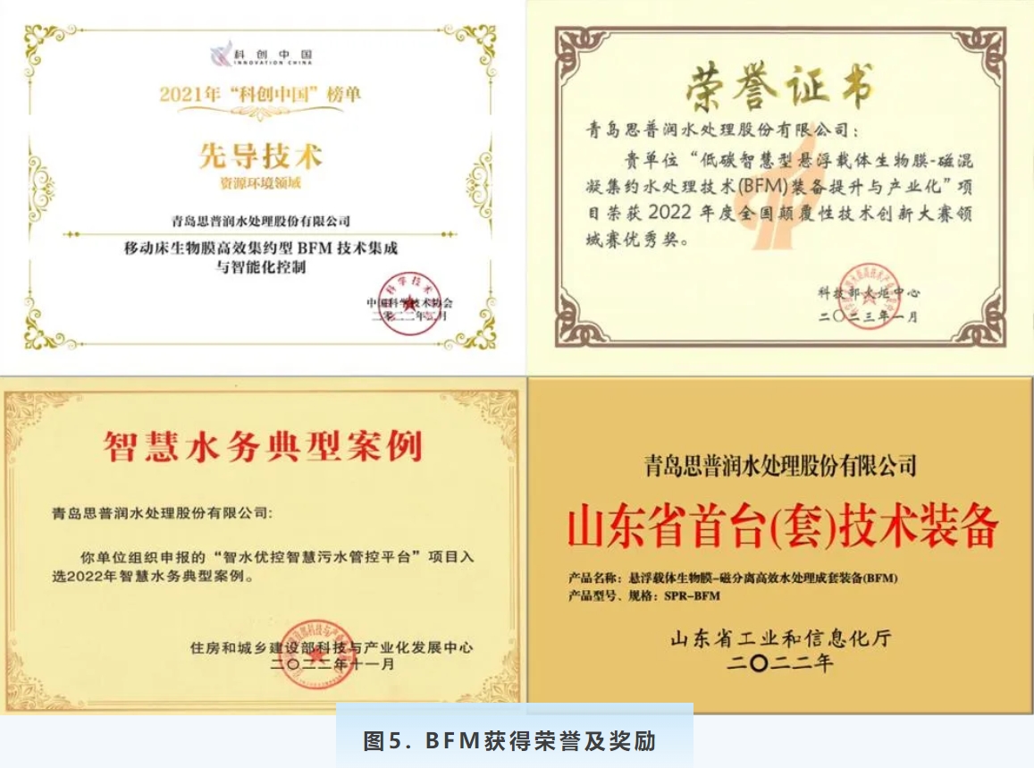 BFM工藝降低了 70%的土地占用,30%的碳排放,實現(xiàn)了100%的智慧管理。該工藝于2021年通過住建部科技與產(chǎn)業(yè)化發(fā)展中心組織的院士專家組鑒定達到“國際領(lǐng)先”水平,同年入選“科創(chuàng)中國”先導(dǎo)技術(shù)榜,獲2022年度全國顛覆性技術(shù)創(chuàng)新大賽領(lǐng)域賽優(yōu)秀獎、山東省建設(shè)科技創(chuàng)新成果競賽一等獎等榮譽,入選山東省首臺(套)技術(shù)裝備,獲專利密集型產(chǎn)品備案認定。